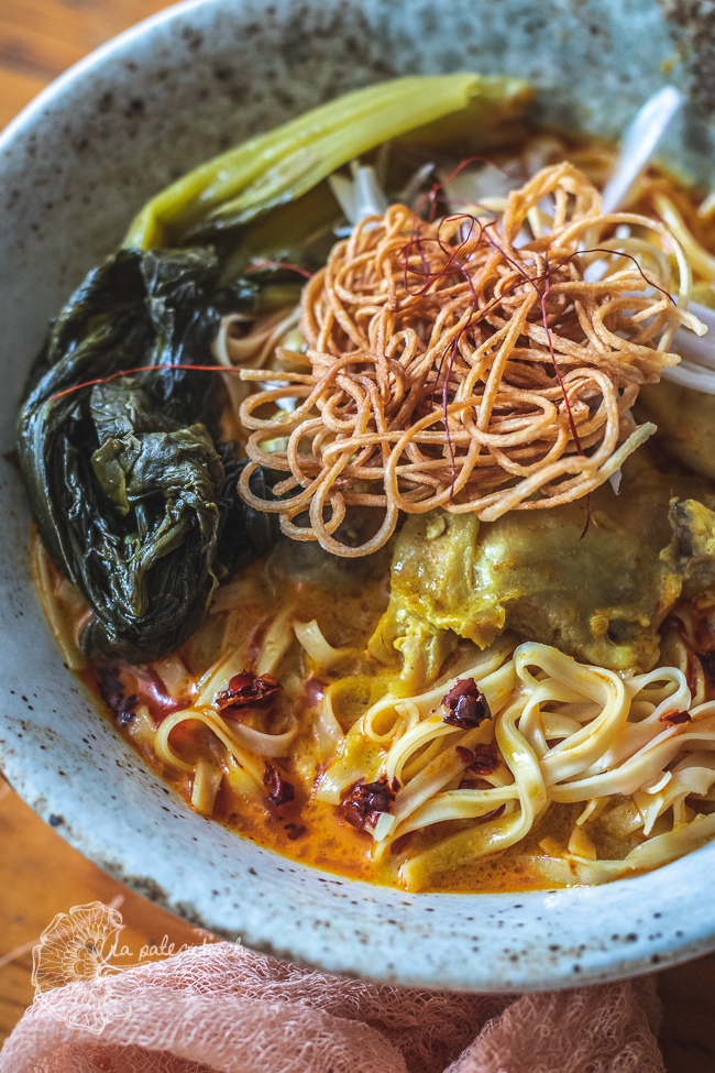 Za kuchnię tajską zwykle zabieramy się z małym ociąganiem, choć wiemy, że dla wielu z Was jest ona zapewne jedną z ulubionych. Dziś skierujemy się w tamte kulinarne rejony i pokażemy Wam jak przygotować khao soi. Chyba nie skłamiemy za bardzo pisząc, że jest to jedno z najlepszych dań tajskich jakie do tej pory jadłyśmy. Sama baza jest pełna aromatu, a kropką nad i jest makaron. Nie taki zwyczajny, prosto z wody, a usmażony! Znakomicie współgra z całą resztą potrawy, no i wiadomo, że smażone niestety dodaje plus 100 do ogólnej dobroci… Jeśli macie więc ochotę trochę pochrupać, a przy okazji najeść się pysznego i aromatycznego bulionu to zupa curry będzie wyborem idealnym.